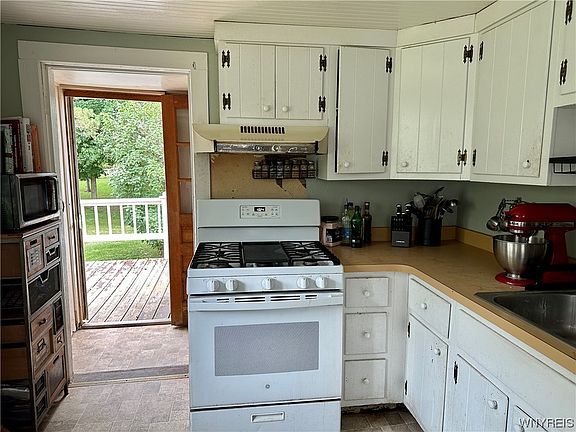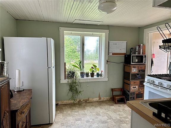 3 bedrooms, 1 1/2 baths working farm and house. Many new updates include: roof 2020, hot water tank 2020, drywalled barn 2021, water and gas to the heated barn that was being used as a dog kennel, refrigerator and stove 2021, upstairs new windows 2020. Many new fruit trees have been planted, 6 peach trees, 2 apple and 2 cherry. The garage space attached to the kennel was built in 2016 to park a semi in it so extra thick concrete. Chicken coop included and there's an electric pet fence.