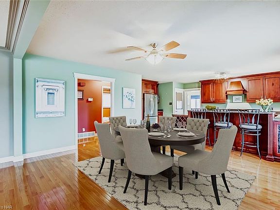 Dazzling Reverie for Multi-generational Family! Heaven surrounded by Wine fields and easy access to QEW highway. Magnificent Living space of 3900 sq.ft. inside Spectacular .875 acre with Picturesque View of the Niagara Escarpment. Enjoy Stunning Four Seasons. Well-Maintained, Neat and Beautiful. Sky-Raised detached two-level Brick Bungalow of 5+1 Bedrooms, 2 Full Kitchens, 2 Mammoth Living/Dining Rooms, Giant Family Room which may make a fabulous Master Bedroom, 3 Bathrooms, Interior Wood Fireplace, and 4 Entrances (Front Back Patio Side). Open Concept throughout! Each corner, bedroom and living room is naturally bright and overflows of day light all day long all seasons. Bright Walkout Fully Finished Basement. Exterior Chimera Fireplace for outdoor barbecue parties beside Full Wood Deck-Gazebo. Two-storey detached garage for 4 cars dream of Mechanic/Hobbyist. Garden Shed for gardening equipment. Long driveway ideal for parking RV/boats. Invisible fencing is in place for your pets. Check out the interactive tour under MORE PHOTOS with floor plans. Faut Voir pour y Croire ! C'est La Maison Éblouissante ! Située dans une propriété entourée de vignobles ! Visitez avant de conduire ! Regardez la présentation virtuelle par Internet ! Elle vous donne accès pas à pas à cette propriété, prenez votre temps pour accroitre et décroître la vue de chaque coin pour visualiser les formes et les couleurs, voir et revoir à volonté ! Pour vous Éblouir par l'Esthétique à L'État Pur, en Chair et en Os! Ensoleillée toute la Journée toutes les Saisons ! Chaque coin, chaque chambre et chaque salon est éclairée naturellement et déborde de lumière du jour toute la journée. Bien Entretenu, Bien Soigné et en Bonne État, Ce bungalow surélevé et isolé en brique de 1938 pieds carrés offre une surface habitable de 3900 pieds carrés en 2 étages sur un magnifique terrain, situé sur 0.875 acres avec un vue dégagée spectaculaire de l'escarpement du Niagara.