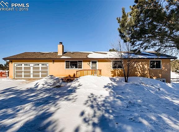 Located in the Black Forest and with Award Winning District 20 Schools, this home provides 2.32 meadow and treed acres with mountain views and privacy. Pristine condition, this well kept home features 4 bedrooms, 3 baths, and finished basement. The backyard is fully fenced and dog fenced, and has a quaint, fenced off garden. Totally updated kitchen, bathrooms, with granite, tile, and custom backsplashes. This home is totally "move in" ready. Backs larger parcel. Bring your animals and your hobbies. Enter into a lovely formal living room teeming with character from the hardwood floors and white trim, to the charming wood burning fireplace. To the right is leads to 2 secondary bedrooms, a full bath, and the spacious master bedroom and private 3/4 bath with custom tile shower. Through the living room are the dining room and kitchen, featuring hardwood floors, upgraded cabinets, granite countertops, and white-on-white appliances. Here there is a walkout to the large wood deck overlooking the gorgeous property and fully fenced backyard. Past the kitchen is the stairway to the basement, which is fully carpeted. Downstairs is a wonderful multi-use space with custom built-in cabinets and shelving, a family room, a large secondary bedroom, another ?? bath, and a 120+ square foot laundry room with storage access. There are only two words to describe this home: "SEE IT!"
