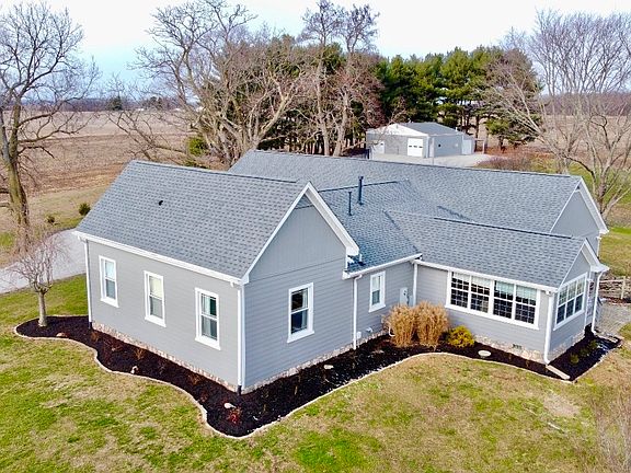 Spacious country home with workshop, garden, and fruit trees! Nestled on 3.5 rolling acres, this beautifully updated 3-bedroom plus office, 2.5-bath ranch offers over 5,100 sq. ft. of living space, including a walkout basement. The open-concept kitchen features granite counters, gas stove, and a very large pantry, while the living areas and sunroom offer expansive country views. The master suite boasts a seating area and a large tiled shower. Custom wood ceilings throughout add character and warmth to the home while the large laundry/mudroom adds convenience and functionality. The oversized, insulated garage includes epoxy floors and a stairwell to the attic space perfect for storage. Gardening enthusiasts will love the sandy, fertile soil in the large garden area. The heated 40x40 workshop with a wood stove, 220 Amp service, and 2-ton lift is perfect for hobbyists. Apart from the new addition in 2006, more recent updates include a new roof on all structures, A/C, fresh paint inside and out, an encapsulated crawl space and much more. Just 10 minutes from Columbus and 4 minutes to Ceraland Park, this home offers privacy, beauty, modern amenities, and room to grow.