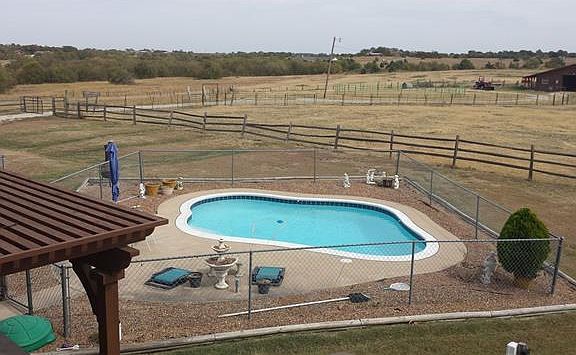 A true horse property surrounded with spectacular views. This Cedar home with steep roof lines gives it a Colorado feel. It has plenty of room with 5 bedrooms, 3 full baths and 2 living areas. The recreational pool offers some cool days in the Texas hot summers it also has a cedar pole barn with 4 stalls, large tack room and wash area for horses.