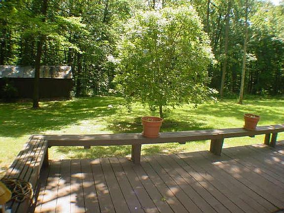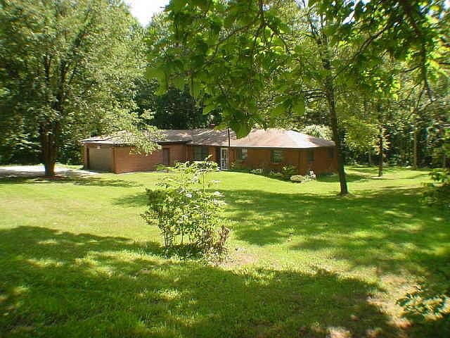 All brick w/vinyl soffitts and newer furnace (2 yrs old) and septic (2 yrs old). What a setting! Trees everywhere! Very secluded from other homes. Newer deck in back looks out towards woods. 16x32 storage shed w/cement floor. Nice size home w/lr and large family room. **Hardwood floors under lr, hall and all bedrooms per seller.House seems sturdy enough, but needs cosmetic updating.