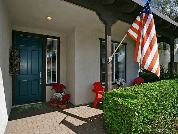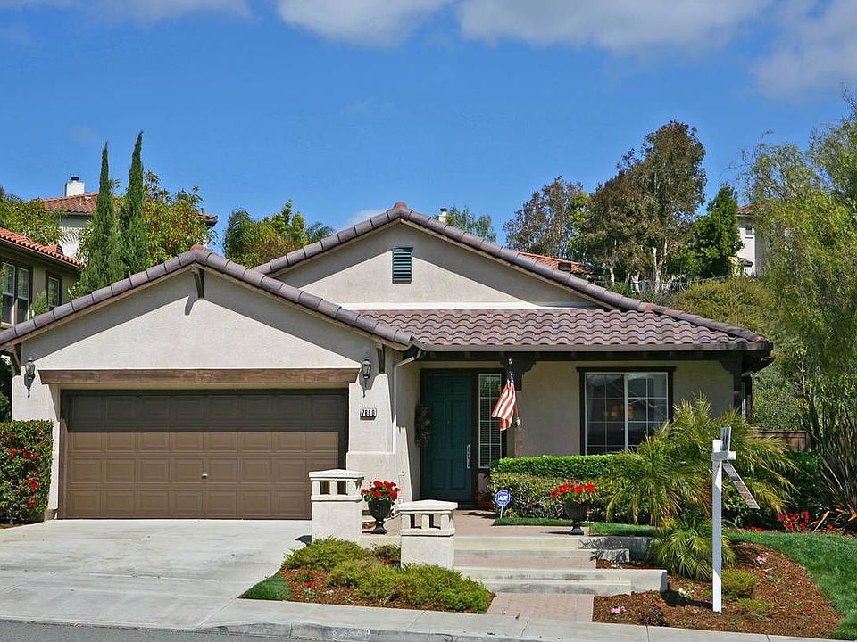 Exceptional one-level living home; minutes from everything. Walk to The Forum; minutes by car to the beach. La Costa Valley has beautiful amenites including walking trails, gorgeous club house, pool....it's a vacation everyday! This home was formerly the model and a rare find. Many upgrades include Mannington hardwood flooring from entrance through kitchen and into family room. Private yard with ample patio areas to enjoy California out door living at its best.Cute to the max!!! Check out the front porch; lots of hardscape and mature landscaping. Cathedral ceilings, dual-pane windows. Brand new hot-water heater; security system; Central AC, Master suite located off private yard and patios with great walk-in closet, oval tub. Mirrored closets. Built-in refrigerator and dishwasher has fronted cabinetry to match the rest of the kitchen cabinets. Water filtration system, instant hot water. Lots of storage; check out all the cabinetry, pantry and storage in the kitchen! This home has it all; very open floorplan with gracious one-level living and no stairs. Cozy breakfast nook in large, expansive kitchen...poses as a "great room" opening to the family room.