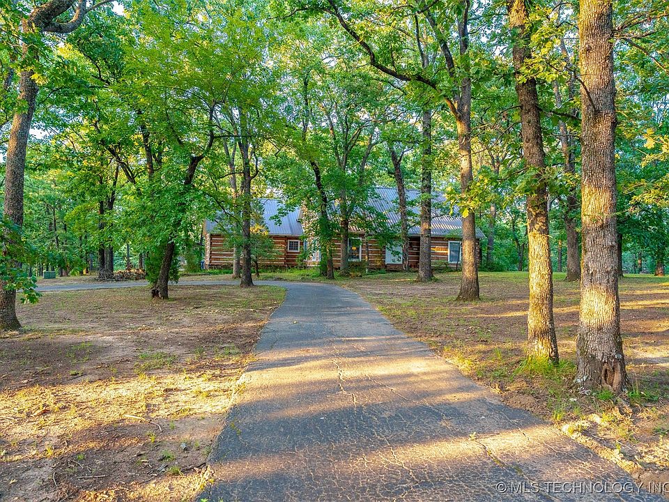 ONE-OF-A-KIND LOG HOME ON 1.36 +/- ACRES—ONLY 4 MILES FROM HWY 69 AND 10 MILES FROM MUSKOGEE TURNPIKE! Situated in the Muskogee countryside surrounded by mature Hickory and Oak trees, this stunning custom-built log home offers a perfect blend of rustic charm, rural seclusion, and modern convenience. Crafted from hand-hewn logs carefully selected, this masterpiece is rich in character and quality craftsmanship. Inside, the spacious 4-bedroom, 3-bathroom layout is designed for comfort and functionality. The main floor features 2 bedrooms and 2 bathrooms, while upstairs offers 2 additional bedrooms and 1 bathroom—ideal for family or guests. The grand cathedral ceilings, adorned with exposed wooden beams and large skylight, create an open and inviting atmosphere, while knotty pine hardwood floors flow seamlessly throughout the home. The heart of the home is the double-sided stone fireplace. Whether you enjoy the crackle of a wood-burning fire or the convenience of gas, this stunning focal point is a statement piece. The gourmet kitchen features a copper range hood, a gas stove, an additional built-in oven, and a kitchen island with a drop-down table—perfect for meal prep or casual dining. The upstairs loft area with built-in shelves offers the perfect spot for a home office, library, or play area. Step outside onto the oversized back deck, an entertainer’s paradise, ideal for hosting gatherings. The fenced yard adds privacy, while the 12’x18’ storage shed offers additional space for tools or hobbies. Located just 6 miles from Muskogee, 16 miles to Wagoner, 20 miles to Coweta, and 45 minutes Tulsa, this home offers the best of both worlds—quiet, country-like living with easy access to city amenities. Don’t miss this rare opportunity to own a truly exceptional property filled with timeless beauty and custom details. Whether you're looking for a peaceful retreat or a one-of-a-kind forever home, this log cabin is a must-see!