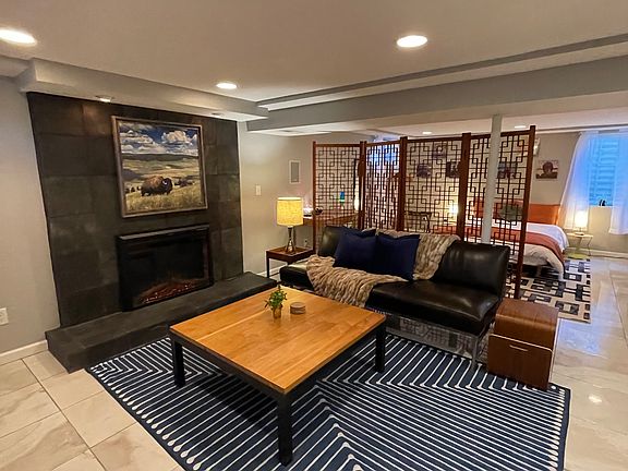 Extra cozy throwEgress windowPrivate entranceDown comforterElectric fireplaceRecord playerSoft white cotton sheets