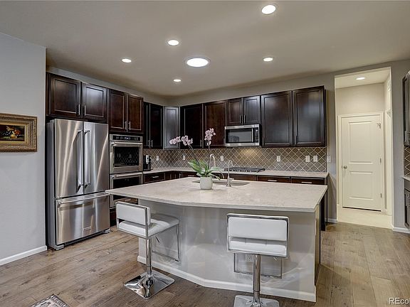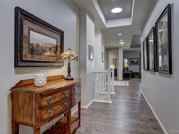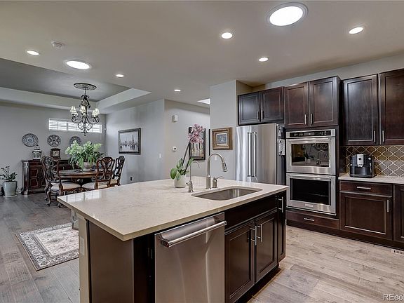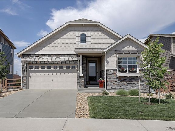 Move right in to this beautiful Ranch style home in the sought after community of Whispering Pines. This home has over $165k in upgrades and you will truly appreciate all of them from the moment you arrive! Meticulously maintained, this 4 bed/3 bath open floor plan has everything you want and so much more. You are greeted by gleaming engineered wood flooring that flows from the entry, great room, kitchen and dining areas which are all open to each other and perfect space for entertaining. Gourmet kitchen offers an expansive island, an abundance of rich toned cabinetry, granite counters, upgraded KitchenAid stainless steel appliance package, beautiful tiled backsplash and a bank of glass front cabinetry to show off your finest stemware and china. The great room offers a floor to ceiling tiled gas fireplace and access to the covered deck where you can enjoy the mountain view. You can sit at the kitchen island or for more formal dining the dining area has ample space for large gatherings. The master suite offers coffered ceilings & plenty of room for your furnishings & has a four piece master bath with spa shower and walk in closet. No need to walk down the hall for laundry as its conveniently attached to the master closet. Two generous sized secondary bedrooms and full hall bath also on the main floor allow for family space or can be used as an office or additional den. In need of more living space, then you will truly enjoy the finished garden level basement that is light and bright and has an additional bedroom, full bathroom, grand family room space, rough-in wet bar area and additional storage too. The sellers have also added many features that include, solar lighting, beautiful lighting fixtures, mirrors, water treatment system and many others...Two car oversized garage, central air, professionally landscaped front and back yards are all waiting for you....This community has a beautiful pool and clubhouse and loads of trails & parks for you to enjoy...
