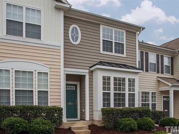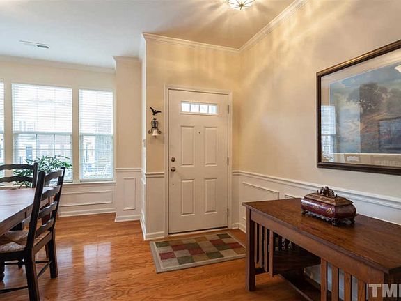 LOCATION, LOCATION, LOCATION! This home is nestled just behind Kohls shopping center at Brier Creek! Walk to the brand new O2 fitness center, Walmart, Panera, Ale House, & Wild Wings! 2 story townhome features hardwood floors & crown molding thru 1st floor. White kitchen has raised panel cabinets & solid surface counter tops, & opens to lg family rm with gas fireplace. Large dining rm could be office/playroom. Tons of windows for natural light. Upstairs are 2 LARGE bedrooms ea with its own private bath.