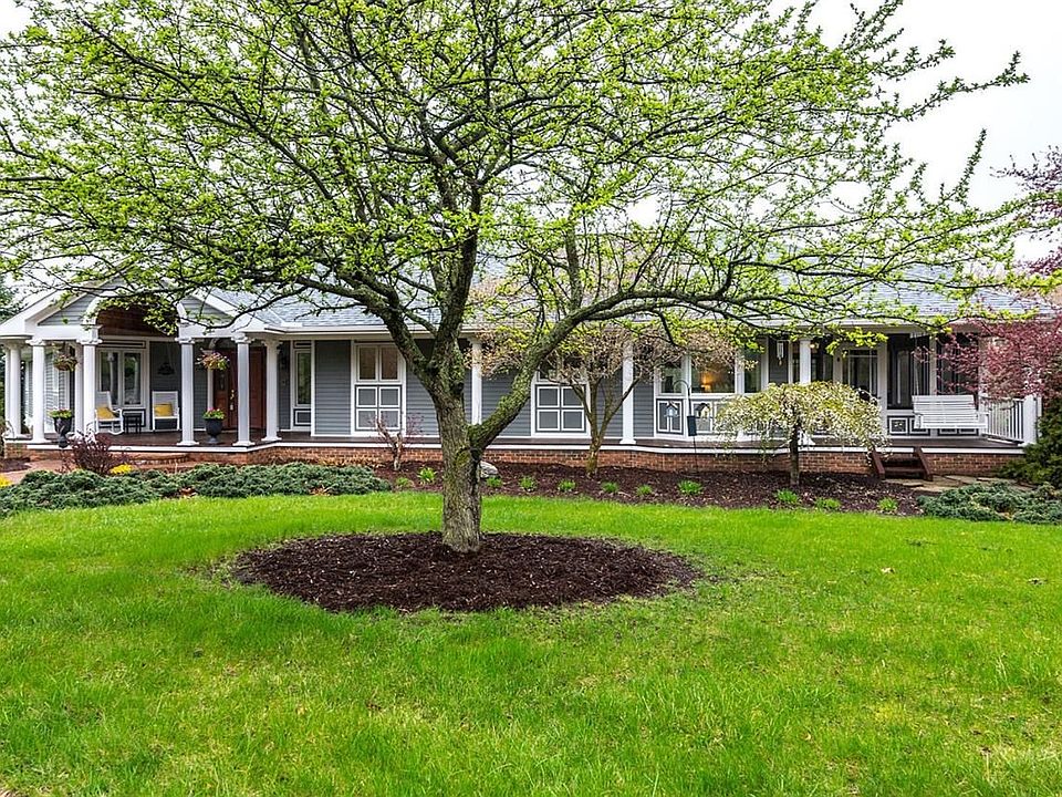 Serenity close to the City! Pristine ranch beautifully situated on 6.7 gently rolling acres that feels private throughout the seasons. This tailor-made home shines from top to bottom. From the foyer you are greeted by picturesque views of property through a wall of windows with light shining from skylights. Open concept living area combines kitchen, dining room and family room while still giving rooms defined space. Kitchen with new sub zero fridge and built in seating. Family room with fireplace leads to screened porch. Layout is complete with master suite w/Trex deck, 2 additional bedrooms, full bath, sunny laundry room, 1/2 bath and study. The Bright and sunny walk out lower level provides 2282 sqr ft additional living space with family room, kitchenette, 2 bedrooms, 2 baths, study. Property gives country cozy feel with combination open area, pasture area and mature landscaping. Newer 4 stall horse barn with tack stall, wash rack, water and electric! Attached 2 car and detached 4 car garage, multi level Trex deck, 2017 roof, 2 furnaces 2015, AC 2018 and much more!