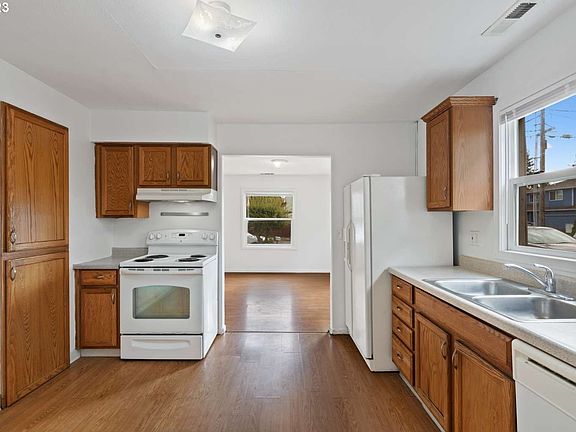 Starter home or rental in quiet/safe SE Portland neighborhood that offers a large back yard with room to build. Home has large master bedroom with walk-in closets. There is an unfinished attic to store your holiday decorations, luggage or that ugly painting your aspiring artist relative gave you. Laundry room off the kitchen with room for additional storage. Close to Woodstock neighborhood restaurants and shopping. Lots of public transportation options close by and walking distance to bike path that goes for miles. Cute, clean, comfortable & close in. Newer roof and forced gas air for heat. All windows (except one) are newer. Drive way has easement but not shared. All appliances stay.