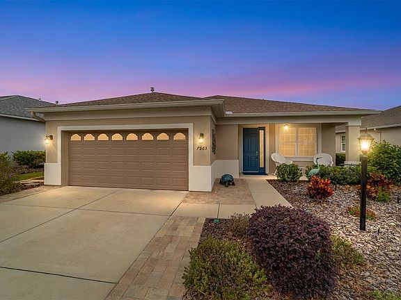 PRIVATE RETENTION VIEW: Welcome to this beautifully maintained Orchid model, perfectly positioned on a private retention pond in Indigo East-an active adult community within the renowned On Top of the World campus. This spacious home offers 3 bedrooms, 2 bathrooms, a versatile flex room, and an oversized 2-car garage with pristine epoxy flooring. Step inside to an inviting open-concept layout highlighted by diagonal-set tile throughout the main living areas and plush carpet in the bedrooms. The kitchen is a standout feature, boasting a long, 6-seater island, stainless steel appliances, solid wood cabinetry with crown molding, granite countertops, travertine backsplash, and under-cabinet lighting. It opens directly to the great room, making this home ideal for both everyday living and entertaining. The primary suite provides a peaceful retreat with tray ceilings, crown molding, and an ensuite bath complete with a double-vanity sink and a beautifully tiled walk-in shower. The enclosed northern-exposure lanai offers year-round enjoyment, while the brick paver patio extends your living space outdoors, perfect for taking in the serene retention view. This home comes loaded with thoughtful upgrades, including a water softener, dedicated golf cart charger, enhanced recessed lighting, and recent exterior paint. Indigo East residents enjoy exclusive access to a wealth of private amenities, including 2 swimming pools, fitness center, clubhouse, as well as curbside mail delivery and waste pickup. On Top of the World is the premier 55+ resort, golf community with golf cart access to shopping, entertainment, restaurants, health, and beauty.