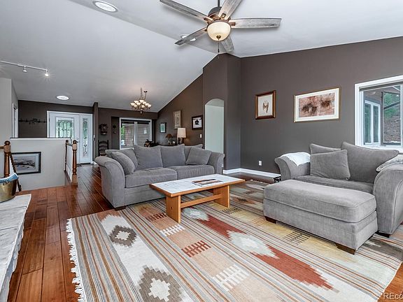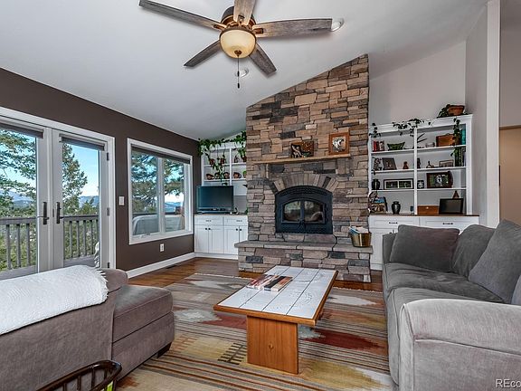 Welcome home to the quiet serenity of mountain top living with breathtaking views of Mount Evans and the rolling valleys below. Newly built in 2014 and exceptionally maintained this beautiful house features a main floor master opening to the deck with mountain views and large walk in closet. Beautiful hardwoods throughout the upper match custom cabinetry in the kitchen. A great room with vaulted ceilings, 1/2 bath, cozy and efficient wood burning stove and double doors that open up to a west facing newly repainted deck. The walkout lower level features two bedrooms and another wood burning stove, full bathroom, laundry room, a nice large living room and office. An amazing outdoor patio with a fire pit and outdoor lighting will be enjoyed by family and friends. The peaceful 3 acres property have been fire mitigated with a trail that has been built for ease of bringing firewood from one end of property to the other. Easy access to Hwy 285 and nearby public open space.