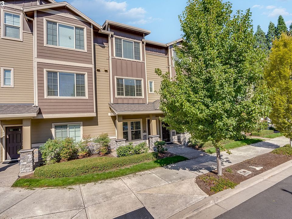 This was the model home and has tons of updates! Incredible location quick to Hwy 26, Intel, Nike, Tektronic etc. You won't believe the brick walls, the floating shelves, and the beautiful fireplace surround in the great room. Work from Home? - The lower level office area is not only beautifully designed but funcational with built in shelving, cabinets, and a half bath. Designer wall color/finish, blinds throughout & Air conditioning are just some of the upgrades. All appliances including washer & dryer stay with the home! Great room floor plan with 2 separate living areas and two ensuite bedrooms! Nice sized garage, move in ready! Neighborhood has play area, picnic tables and right next to a BPA Park! Convenient to shopping & amenities.