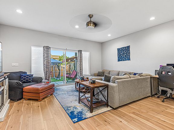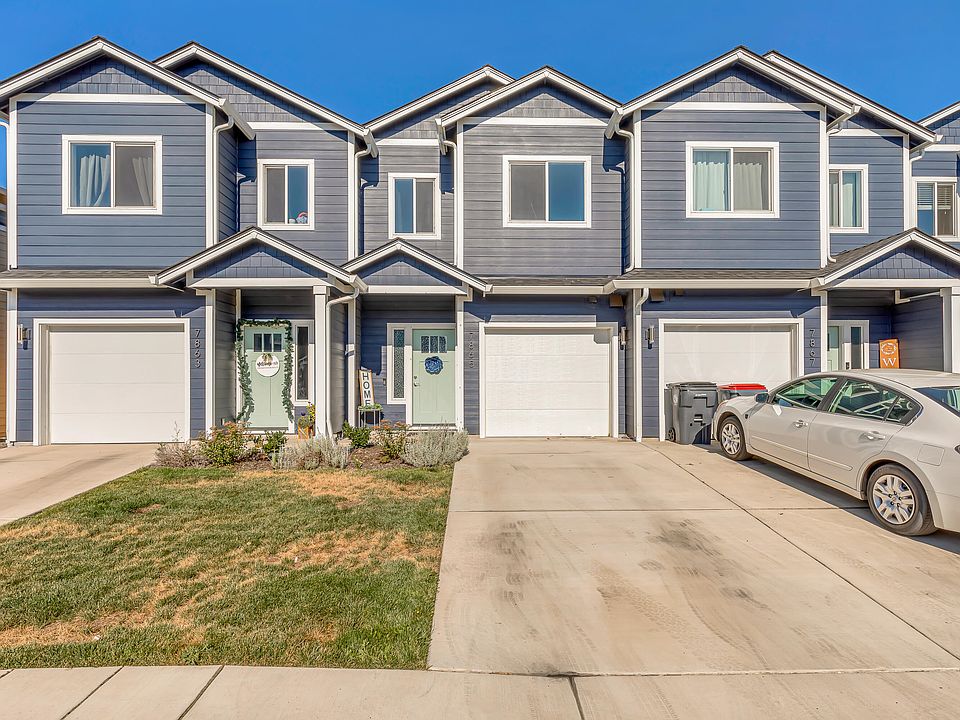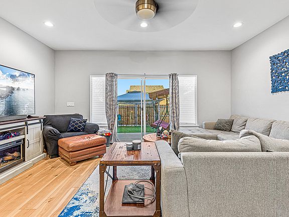 Fantastic newer home in a great neighborhood. This home features an open floor plan, beautiful contemporary finishes, 3 bedrooms, 2.5 bathrooms, 1613 sq ft, laminate flooring, and luxury updates throughout. Spacious living room with glass sliding door leads out to the backyard. Gorgeous kitchen offers an island with pendant lighting, stainless appliances, kitchen pantry, and quartz counters with tile backsplash. Huge primary bedroom offers a sitting area/den and 2 closets, attached beautiful, tiled bathroom with 2 sinks and large shower. Guest bedrooms are located upstairs near primary bedroom, along with the laundry area and wonderful full bathroom with tub/shower. Half bathroom is located near the living room. Enjoy the abundant storage space in home and attached, finished one car garage. Over-sized fenced backyard offers a covered patio and artificial lawn. HOA fees are $148 a month and include water, sewer & front yard landscaping. Move-in ready.