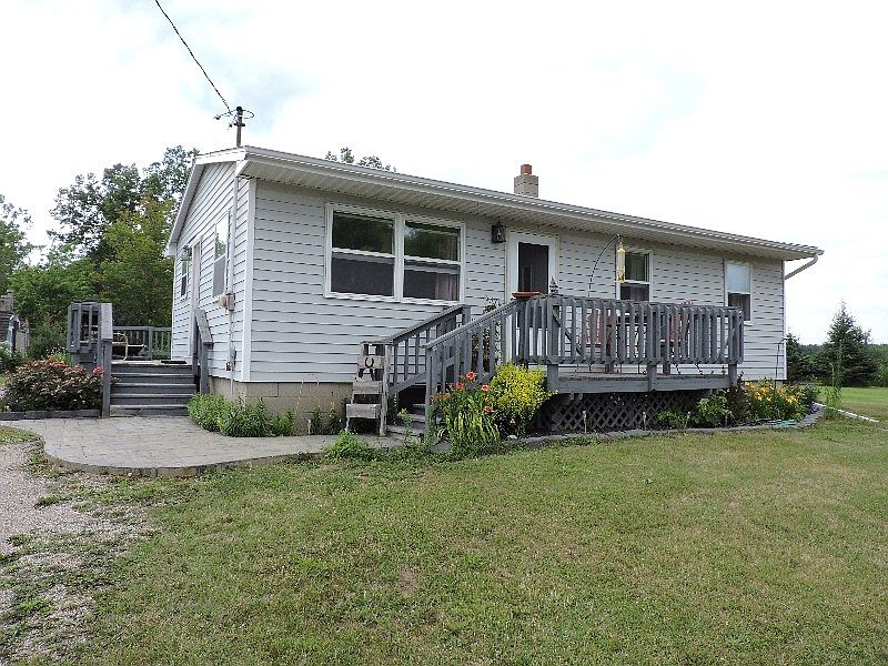COMPLETELY REMODELED COUNTRY HOME ON BASEMENT WITH 4 ACRES INCLUDES WOODS!!! Nicely landscaped with plenty of storage this home is nicely updated with newer maple kitchen including tiled floors, updated bathroom with tiled flooring, plus if you like hardwood floors their the real deal on this one! Central air. Nice patio decks to enjoy those beautiful country peace and tranquility all on 4 acres with beautiful woods! 3 large storage sheds for all your storage needs. This one won't be around long!