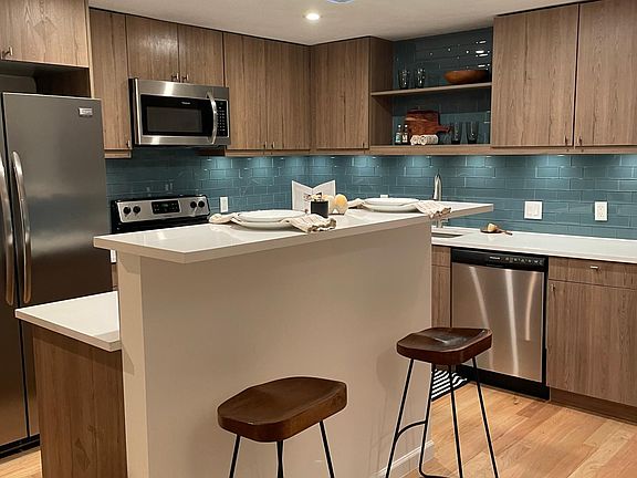 BRAND NEW renovated duplex near Crown Hill Park. This 2 bedroom / 1 bath ranch is located on a quiet enclave/neighborhood. The home is light and bright with plenty of closet space! Large eat-in European style kitchen with brand new cabinets and countertops. Original resurfaced wood floors throughout the house and updated bathroom. Washer & dryer in-unit. Large private backyard offers a patio with a nice lawn and beautiful shade trees. Large covered front porch. Extra large bedrooms, one with access to patio. Tons of natural light throughout! Mountain views and epic sunsets. Close to Crown Hill and 1.5 miles to to Sloan's Lake. Easy access to I-70 and 6th Ave, 10-minute drive to Golden, and 12-minute drive to Downtown Denver. Two off street parking spots. Extra storage shed available at $75/month. One year Lease minimum. $2400 per month. $2400 security deposit. Available fully furnished for $2900/mo. $50 per/mo HOA fee includes water, trash removal Tenant responsible for electric, grounds maintenance and snow removal. Large and small dogs allowed, $300 non-refundable pet deposit required for 1 pet. $100 for second dog. Max two dogs. Sorry, no cats. Background and credit check required. Smoking permitted outdoors. 420 friendly. Application completion required prior to viewing by appointment. Open house Saturday 12/3/22 9:30a-11a. Owner pays for water. Tenant pays for gas and electric. HOA fee covers trash removal. Tenant responsible for lawn/yard maintenance and snow removal. Dogs of any size ok. Must remove dog fecal matter daily as it is deposited.