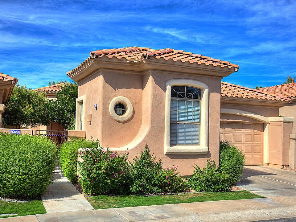 3 bedroom 3 bath single level home located in the desirable community of Scottsdale country club village with fantastic golf course and mountain views. The main home has 2 bedrooms 2 baths plus a 1 bedroom 1 bath casita with a separate entrance. beautiful patio overlooking the golf course and a private front courtyard. Seller offering a 3,000. appliance allowance.