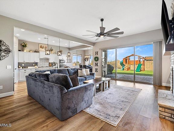 Better than new home in Pronghorn Ranch! This exceptional home offers the perfect blend of modern luxury and serene living, all set against the breathtaking backdrop of Arizona's majestic mountains. An open-concept layout and gourmet kitchen is perfect for entertaining. Upgraded with quartz counter tops, pendant lighting, beautiful accent walls throughout the house, luxury vinyl flooring. The flex space has endless use options - an office, workout space or sitting room. Fully landscaped front and back, situated at the end of a cul-de-sac with open space to the west.