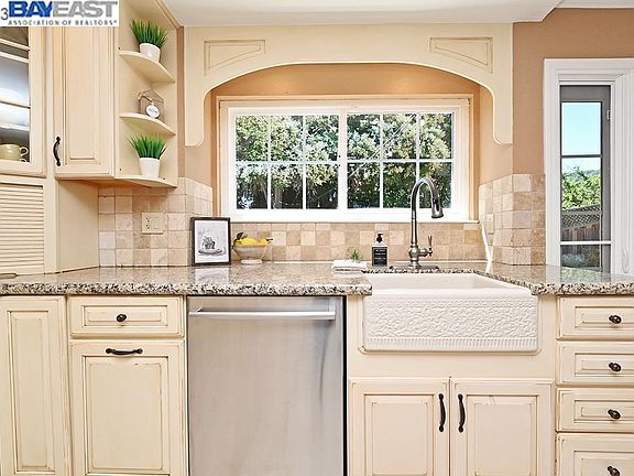 WESTSIDE PLEASANTON Home with Ridge Views! HIGH-END updates and improvements inside and out with LARGE 3-Car Garage on a Private Tree-Lined Street. Hardwood floors, crown moulding, custom built-ins, vaulted and tray ceilings, two fireplaces, recessed lighting, custom tilework and more. Updated granite/stainless kitchen with farm sink and stone backsplash. Oversized primary suite with gorgeous spa bath featuring giant walk-in shower with multiple shower heads, free-standing soaking tub, dual sinks, toilet room and walk-in closet with professional organizers. Convenient 1st floor bedroom and remodeled full bathroom. 3rd bathroom with dual sinks. French doors open to private backyard featuring Pleasanton Ridge views, expansive deck, retractable shade awning, grassy play area and two storage sheds. New heat/air conditioning and water heater. 3-car garage with electric car charger, epoxy floor, Elfa storage cabinetry, bike racks, utility sink and door to exterior with window and doggie door access. Great Stoneridge area location close to schools, parks, shopping, trails and more. Easy BART and 580/680 commute access.