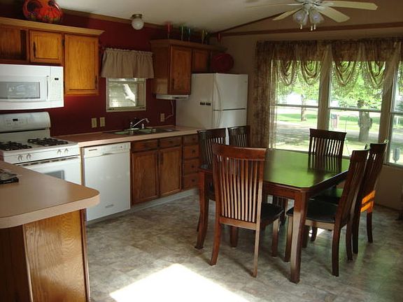 Super clean & spacious home in the Sunwest Acres Retirement Park. This is a 50 yr & above park. There is a nice, big, eat in kitchen that opens up to the living room. The living room has sliders to a large deck. There is an office & bedroom w/a Jack & Jill bath. Master has a master bath w/a jetted tub/shower combo. Two car detached garage. Lot rent is $250 & includes sewer, water, & garbage