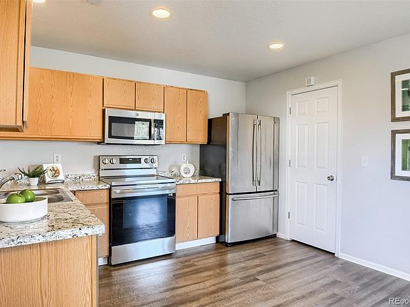 Beautiful updated 3 bedroom, end-unit townhome with attached garage and next to community green space! Walk right in to the updated kitchen with new stainless steel appliances and new countertops, lots of cabinet space and breakfast room area. Living room has lots of windows providing ample natural light, has a dining area and a slider door leading to your private fenced in back patio. Vinyl plank flooring throughout entire main floor. Three spacious bedrooms at the top of the stairs. Primary bedroom has it's own private bathroom and walk in closet. Two spacious guest rooms on other side of the hall share full bathroom. Laundry room is also upstairs for convenience! Great convenient location for everything! Right next to Centennial Open Space with Cherry Creek running through it. Easy access to Parker Road and 470. Lots of great restaurants and shopping, short drive to Cherry Creek State Park. This is one you don't want to miss!