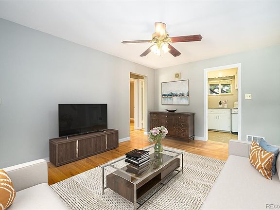 Can't beat the price on this one level move-in ready home. This all-brick ranch home has new paint, hardwood floors, updated bathroom, newer roof, attached garage and cute covered front porch. The picturesque backyard is huge with mature trees, 2 sheds and garden boxes. Great location half a mile from the light rail and easy access to I70 & 6th Avenue. Large driveway for RV parking. No HOA!