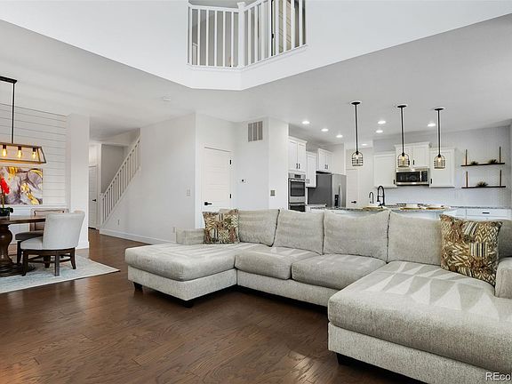 GORGEOUS HOME IN THE WONDERFUL COMMUNITY OF QUEBEC HIGHLANDS BACKING TO OPEN SPACE! The minute you walk in you will fall in love with the bright and sunny open floor plan featuring vaulted ceilings!! Stunning kitchen with a large island, white cabinets, mosaic backsplash, walk in pantry, and an eat in dining space! Stainless steel appliances including a gas cooktop & double oven. Built-in mudroom off the garage and a butlers pantry tucked away behind the kitchen! The beautiful kitchen opens up to the 2 story great room with a gas fireplace and formal dining room area. This home has a perfect floorplan to host all those holiday gatherings! Main floor office. Upstairs features 3 additional bedrooms with walk in closets. The spacious master suite has a 5 piece master bathroom including a walk in shower and oval tub great for those relaxation nights. Huge master closet with built-in shelves. Multiple linen closets throughout. Laundry room is conveniently located next to the master suite. Additional bathroom with double sinks. You'll love entertaining in your finished basement with a wet bar with quartz countertops, wine fridge, custom cabinets. Additional family room, bedroom with walk in closet and a stunning bathroom with custom tile, shower glass and vanity. Additional half bathroom in the basement. Enjoy hosting those summer BBQ's in your private backyard backing to open space. Large deck and new concrete patio is perfect for outdoor dining, entertaining, or simply relaxing! New interior paint, newer custom lighting fixtures, custom mirrors, shelving, and many other custom features throughout. This truly is a one of a kind home located in the highly sought-after community and is close to shopping and dining - just minutes from the grocery stores, Denver Premium Outlets and Orchard Town Center. Steps away from community park. This home has been loved and is truly a gem. Get ready to fall in love with your next home!