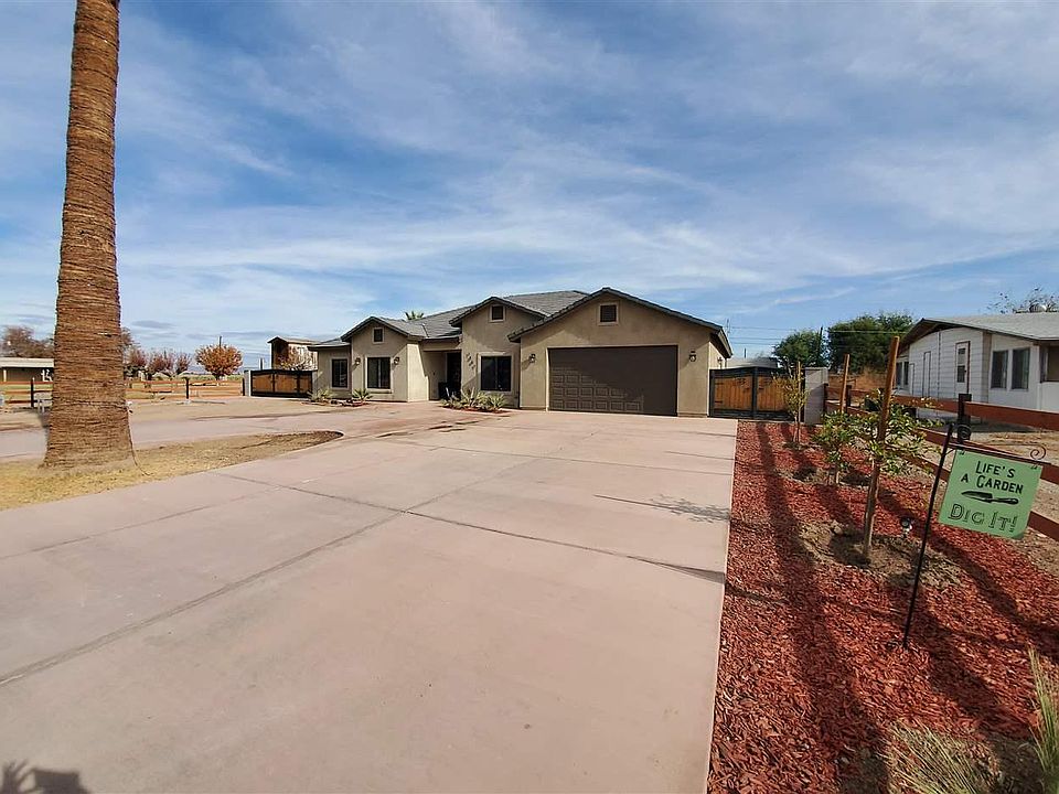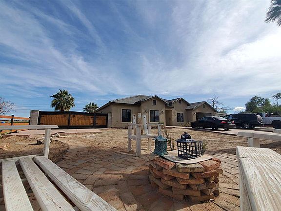 Country living within the city. Custom built Extra-large, fenced back yard & outdoor patio with unique views of Yuma. Has a modern Kitchen custom stainless steel appliances, countertops and cabinetry, formal dining & living room, built with extra insulation resulting in amazingly comfortable interior year-round and noise buffering. Amazing from the time you drive up to the circular driveway to entering through the double iron doors. Extra parking space behind the double gates for parking all your toys