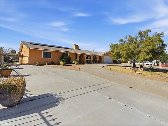 This beautiful, 4 bedroom, 3 bath home, provides a spectacular, unimpeded view of the Mojave River and is ideal for entertaining. It has several upgrades, including a new roof, new AC/heating unit and all new windows installed throughout the home. The exterior was recently painted, along with the inside, including all walls and ceilings. Real wood floors provide a luxurious accompaniment to the remodeled fireplace in the living room and the fully upgraded kitchen, which has new cabinets, new sink, and new counter tops. Other upgrades throughout the home, including an inside laundry room with new floors, reflect the welcoming feel of a new space, just ready and waiting to entertain or provide a cozy sanctuary. The fully landscaped backyard with grass, fruit and citrus trees, a BBQ island and a Bose speaker system all help carry the welcoming feel from the inside of the home to the outside space for guests and homeowner alike. A large, red barn and dollhouse in the backyard, provide a place for additional storage and entertainment for the family. The brick wall that fully encompasses the property provides ample privacy and was built by property owner. A Large welcoming circular driveway, full drip/sprinkler system throughout the property, paid off solar panels, a fully serviced septic system and security camera system throughout, are just a few additional benefits that make this an opportunity you don't want to miss.
