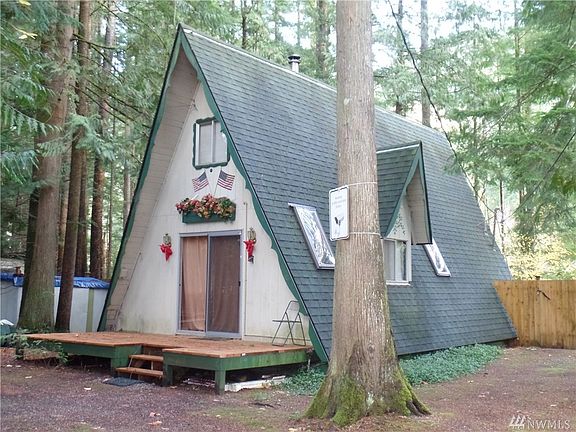 Enjoy privacy & quiet on large lot with convenient circular driveway plus 2nd smaller cabin with power for guests. Attached shed for wood & storage as well.Private fenced back yard with picnic area backing to green area.Cozy up to wood stove or propane and electric heat as well. Open floor plan with spacious living room,plus lots of skylights & spacious kitchen open to dining area.New deck top,newer roof & fencing. 2 rooms upstairs used as bedrooms. Vaulted ceiling with tongue & groove accents.