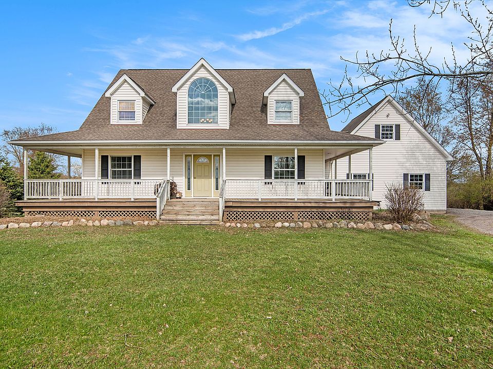 Welcome to your dream home! This stunning property boasts 3 spacious bedrooms, 2 full and 2 half bathrooms, and a walkout basement with high ceilings just waiting to be finished! The hardwood floors throughout the home add a touch of elegance to the already beautiful interior. The kitchen is equipped with stainless steel appliances and the living room features vaulted ceilings and a wood burning fireplace. You'll love the secluded 3-acre lot with a private drive off of Parshallville Rd. that offers a peaceful retreat from the hustle and bustle of everyday life. Step outside onto the large covered front porch or the rear deck to enjoy the picturesque views of your private oasis. The bonus room above the garage is perfect for an office, workout room, or additional bedroom. Located in the highly sought-after Hartland School District, this home is conveniently located near US-23 for easy access to nearby cities and attractions. Don't miss out on the opportunity to make this gorgeous property your forever home!
