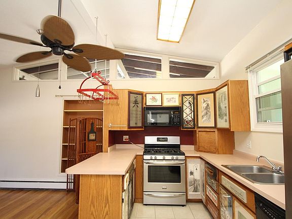 Very clean mid-century modern! Move-in ready! Bright and cheery! Hardwood flooring throughout! Updated double-paned vinyl windows with quality windows shades! Newer kitchen appliances with gas stove!Nicely updated bathroom with beautiful ceramic tile on walls and floor! 3 bedrooms, 1 bath. Perfect starter home, located close to schools and parks! Wonderful laundry room/sun room with very nice washer and dryer! Boiler has recently been serviced! Attached extra long garage with its own service panel! Very maintenance free yard, with lots of plantings and beautiful trees! Terrific storage shed! Nice deck for outdoor entertaining! The seller has done an excellent job of keeping property well maintained. There is an exterior sump pump which he uses to water the yard in the summer - he is leaving it as is.