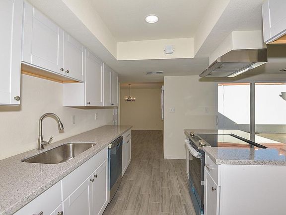 Rare opportunity to own this unique one story townhome! Recently remodeled with new flooring and paint this charming home has 3 bedrooms, 2 baths and 1,630 square feet. Nice large living/dining room when you enter with great natural light. Updated galley kitchen with new appliances, clean white cabinets and a great breakfast area with sliding door leading to your own very private patio space. Great Master with en suite bath featuring a walk in shower and neat vanity niche. 2 additional bedrooms and hall bath complete this terrific home. Two covered parking spaces and 1 uncovered assigned parking space as well as a large storage shed to the rear of the unit. Enjoy the community pool, clubhouse and common areas! Great location with easy access to freeways and shopping. Come check it out!