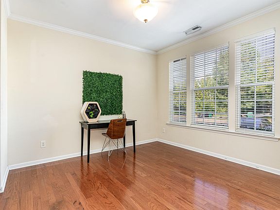 Welcome to 7869 Silverthread Ln, an inviting townhouse nestled in the highly sought-after Brier Creek community! This 2-bedroom, 2.5-bath home offers the perfect balance of modern comfort and suburban charm. From the moment you step inside, you're greeted by an abundance of natural light, highlighting the beautifully maintained hardwood floors that flow seamlessly throughout the main level. The kitchen features sleek solid surface countertops, stainless steel appliances, and ample cabinetry for all your culinary needs. Whether hosting friends for dinner or enjoying a cozy night in, the spacious living and dining areas create the perfect setting for relaxation and entertainment. Upstairs, retreat to the primary suite, complete with a large walk-in closet and a neat en-suite bathroom featuring a double vanity, soaking tub, and shower. The second bedroom offer versatility—ideal for family, guests, or a home office. Step outside to your private patio oasis, perfect for morning coffee or evening relaxation. Enjoy low-maintenance living with easy access to the community pool and clubhouse, plus the beautiful landscaping professionally maintained throughout the neighborhood, all coordinated by the community HOA. With prime location just minutes from top-tier shopping, dining, and the RTP (Research Triangle Park), this home blends convenience with the peaceful retreat you've been searching for. Don't miss out on making 7869 Silverthread Ln your new Raleigh address.