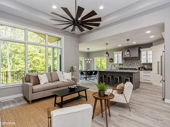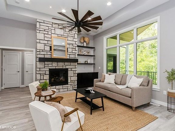 Eastside quality built 5 bedroom, 3 bath walkout ranch. Open floor plan on main level features 11' stone fireplace and 9' x 8' window that allows for tons of natural light. Front foyer/gallery with detailed tray ceiling. Kitchen features large walk-in pantry, granite countertops, custom soft-close cabinetry, convention microwave and wall oven combo, gas cooktop, and large island with seating. Covered deck off dining room. Large primary suite includes tiled shower, walk-in closet and deck access. Walk-out LL has family room with wet bar, two bedrooms, 6x12 wine room, and plenty of storage including utility room for cold storage or secured safe/gun room. Oversized 2 car garage.