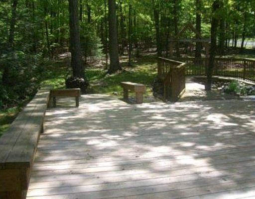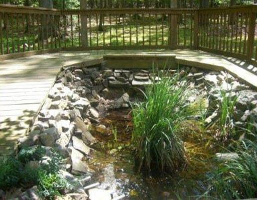 This Mediterranean style home has plenty to offer. Wooded setting w/a babbling brook running behind the home. Wraparound deck w/ an integrated pond. Large vaulted ceiling leading to an open air 2nd floor. This sale is contingent upon court approval. Property has 3 extra lots. One to the left and 2 to the right of home. Tax ID# 788,786,785.