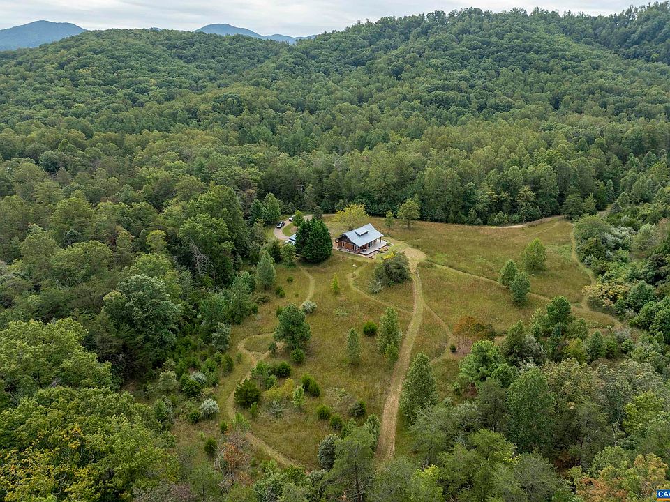 Enjoy starry nights, expansive Blue Ridge Mountain views, quiet and privacy in this craftsman style cottage on 15.57 acres in both Albemarle and Nelson Counties. Located within minutes of the Nelson County Brew Trail and 12 minutes to the Blue Ridge Parkway and Skyline Drive. Easy shopping in Waynesboro and Crozet or 30 Minutes to C-Ville. This is the perfect second home or possible part time Airbnb or full time residence that could be expanded on. There are walking trails mowed into the open land that is left natural for wildlife and butterflies and usually cut in the Spring. The wooded land has a mixture of hardwoods and the fall color is spectacular, Spring brings many native flowers and hundreds of daffodils are planted in the circular drive way. Many recent improvements include mini split for HVAC, new vapor barrier and insulation in the crawl going in next week, hooks ups added for a stack washer and dryer. The storage shed has electricity and makes a perfect workshop of all your crafting ideas and extra storage. This is truly a very special home and setting and the views will only improve as the leaves fall. Come cozy up by the pellet stove and let your spirit run free. One year Cinch home buyers warranty included.