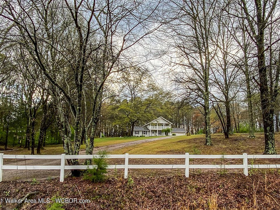 Beautiful 4bd/2ba home situated on 5.6 acres. Master bedroom and bath on the main level with 3 bed and 1 bath upstairs. This home features 2 living spaces, lots of closet space, a 2 car garage, and your own private balcony upstairs. New paint throughout. Lots of deer and wildlife. Property borders a creek in the back. Schedule your showing today! This one won't last long.