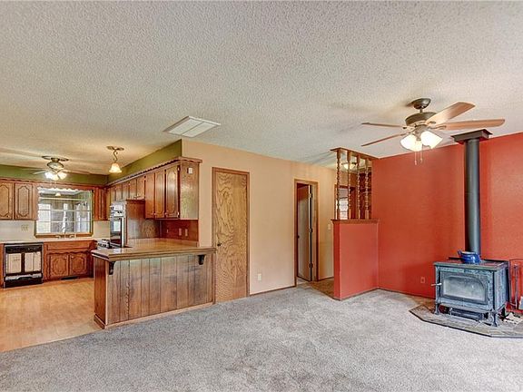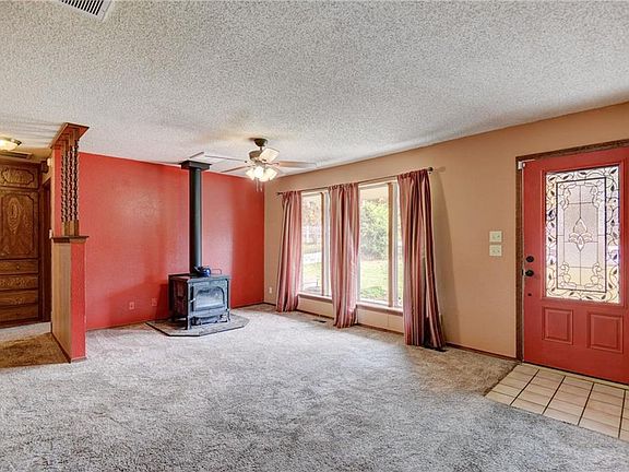 This spacious home sits on 3/4 acre for country type living close to the city! The open floor plan offers ease of entertaining. The living room provides big bright windows and a wood burning stove for cozy nights. It leads to the spacious kitchen that includes a breakfast bar, pantry, tons of storage space, and a stainless steel gas range. It flows into the dining room with backyard access and beautiful glass French doors leading to the Florida room. The master boasts a full bath en suite with built ins for more storage. In the backyard, an open patio looks over the lush land and green trees!
