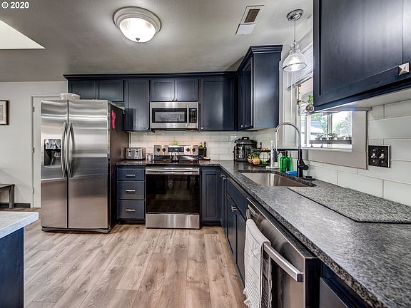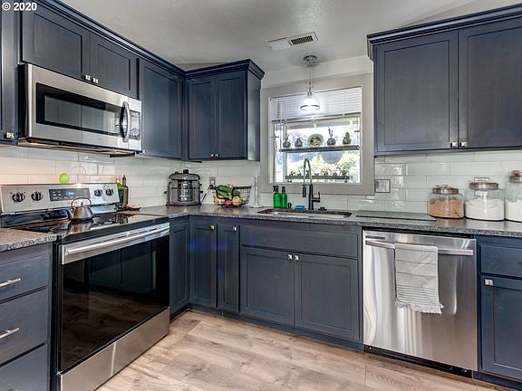 Charming remodeled single level home in convenient N. Eugene location. This light & bright home boasts granite leather counters, Lanz Cabinetry, laminate plank flooring throughout, cozy wood burning fireplace, sunroom and more! Large .22 acre lot with underground sprinklers, RV Parking, attached 2 car garage, spacious fenced backyard & raised garden beds. Easy access to freeway. Close to shopping and schools. OPEN HOUSE SUNDAY 8/2 from 1-3pm.