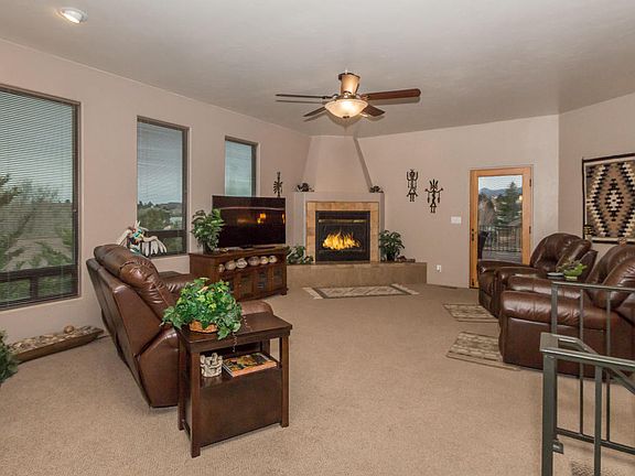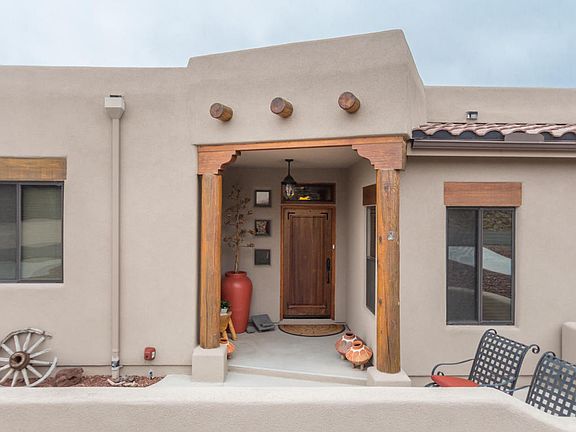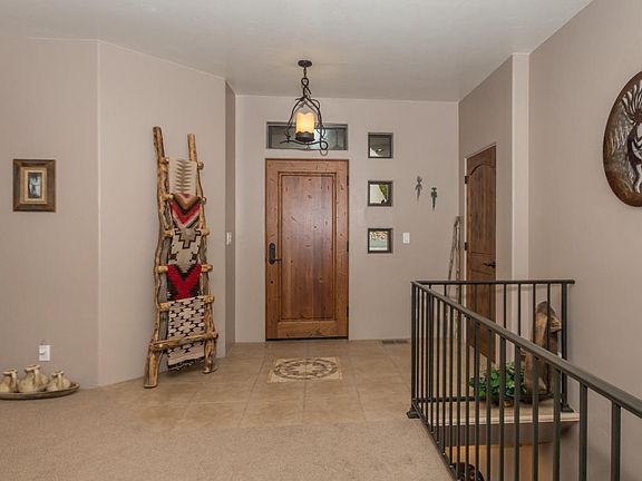 Gorgeous Santa Fe style home! The front entry belies the true size of the spacious living area. From the Brazilian cherry front door, decorative stone entryway, cherry cabinetry and upgraded carpets, it's meticulously maintained and move in ready. Outdoor entertaining is a must...with your favorite drink from the wet bar, good friends & great views from the two upper decks. Main floor living with a master suite, guest room and second full bath. Open living area features a beautiful adobe fireplace that can be enjoyed from both the living and dining room. Spacious kitchen with plenty of storage and garage access through the laundry room. Large 2nd master suite downstairs, game room and walkout to lower level patio. Downstairs garage has a workshop with a concrete driveway from the street.