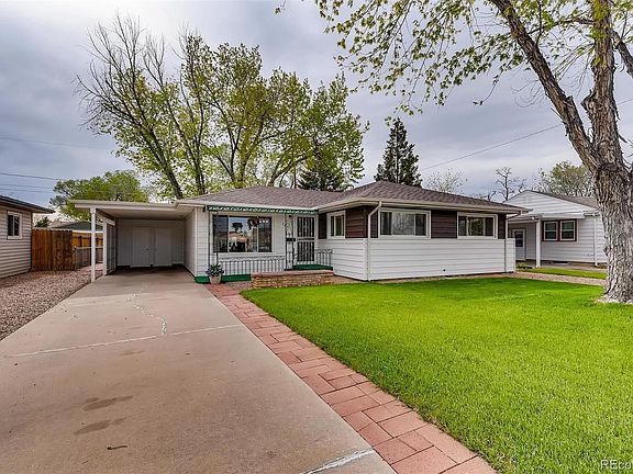 Absolutely charming mid-century bungalow. This home has been occupied by the same meticulous owner for over 50 years. You will love the natural light with large windows facing east and west. Charming kitchen with attached laundry room and large pantry. The hardwood floors are currently covered with carpet, but the lucky new owner will have the option to remove the carpet and enjoy what appears to be very nice original wood flooring in the living room, hallway, and bedrooms. New paint inside and out. Roof was replaced in 2018 along with new gutters. There is a very large and inviting covered patio in the backyard. The well cared for backyard is completely fenced and includes two storage sheds (one of which was once a playhouse). Additional storage available with the attached covered carport. Close to shopping and Hwy 85 - 20 minutes to DIA - 30 minutes to downtown Denver. Delightful home at a very attractive price!