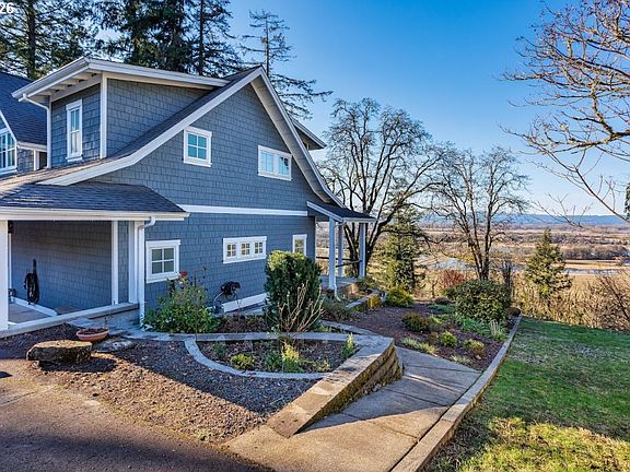 The home at the end of the road with the best view in Ridgefield. Really... A view from every room and a wrap-around, covered deck to watch the bald eagles and deer. Large kitchen with two sinks, quartz, SS, gas cooktop and a ton of counter space. All very custom. One large bedroom on the main and 3 up. 3 full bathrooms. Primary bedroom has jetted tub, vaulted ceiling, double sinks and no reason to ever close the curtains. Lots of character with nooks and crannies throughout. 9-foot ceilings up and down. Huge bonus room has its own deck overlooking the refuge. Gas fireplace, French doors & two eating areas. A secret path leads down to the gazebo surrounded in privacy. In the heart of Ridgefield's golf cart zone.