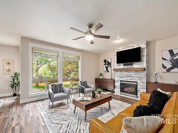 5.5% seller financing is available for the right buyer! Plus, check out the NEW PRICE on this beautiful, updated home in one of the most desirable and accessible locations in the valley! Located in Woodbridge subdivision, w/ community pool and cabana, nature filled walking paths, common areas with streams, ducks, birds, and even wild blackberries. Close to the Village, St. Luke's, shopping, entertainment, and the freeway! This peaceful home has no immediate rear neighbors, lg covered patio, and spacious great room so there is plenty of space to entertain, or just relax and unwind. Updates include quartz countertops, tile backsplashes, luxury vinyl plank and tile flooring, newer paint, stone fireplace, modern railing, & Karastan carpet in the four upstairs bedrooms. 5th bedroom is on the main floor and may also be used as a den/office. Large 3 car tandem garage includes a work bench and storage space. Come see for yourself all this home has to offer. (Make sure GPS is 787 Thornwood Way South, not Drive).