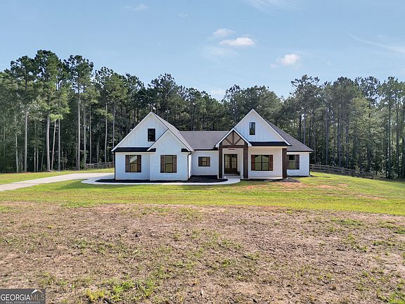 Experience the best of country living in this custom-built 2 year young home on over 12 private acres in Lamar County. From the moment you arrive at the gated entry, you'll appreciate the sense of seclusion and craftsmanship throughout this property. Inside, the living room impresses with vaulted ceilings accented by wood beams, while the trey ceiling in the master suite adds elegance and dimension. The home features 3 bedrooms, 2.5 baths on the main level, plus a full bedroom and bathroom upstairs for guests or extended family. A versatile flex room makes the perfect office or playroom, and custom shelving and spray foam insulation enhance both style and efficiency. The heart of the home features a cozy fireplace, a gas range with a large vent hood, a pot filler, and this home has an efficient tankless water heater. The master bathroom is finished in tile, showcasing craftsmanship and durability. A large laundry room with a doggy wash station adds practicality and convenience for modern living. Step outside to enjoy massive front and back porches - perfect for sipping hot coffee on crisp fall mornings - while the fenced backyard provides a secure space for pets or play. Cedar columns add rustic charm to the exterior, and the 3-car garage offers ample parking and storage. This property combines modern efficiency, luxury finishes, and timeless character with all the privacy and acreage you've been dreaming of.