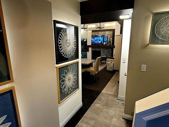 Gas fireplaceFinished basement with barWalk-in closetEntertainment areaGas rangeCorner windowsAdditional storage