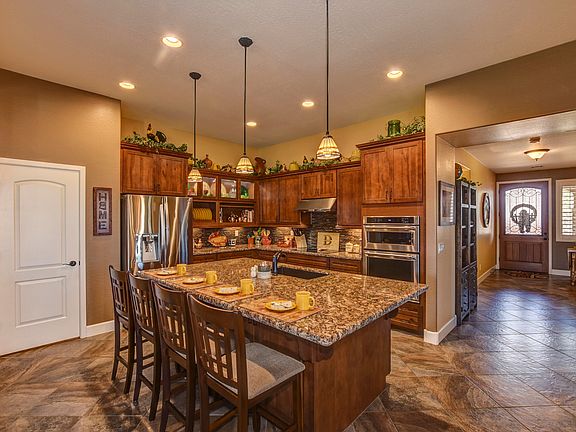You’ll be amazed at this better than new home set in Pronghorn Ranch. It’s hard to list all the indoor and outdoor features of this stunning, single level 2307 square foot home with 3 bedrooms, 2 baths and a 3-car garage. This open concept home shows off all the features of the great room, dining room and the kitchen. Fabulous is what describes the kitchen with its Alder cabinetry, granite counters, stainless-steel Kitchen-Aid appliances including an induction cooktop and a large center island with room to seat up to six. The rough-hewn beamed ceiling and rock hearth gas-log fireplace are the focal points in the great room. Others features of this home include Hickory-engineered hardwood floors, plantation shutters, granite counters, double vanities in both bathrooms, smart thermostat. Set at the end of a cul-de-sac and adjacent to a green belt, you won’t have to deal with new construction near you and you get a fully landscaped yard with amazing outdoor living of gas-log fireplace, gazebo and pergola covered hot tub.
