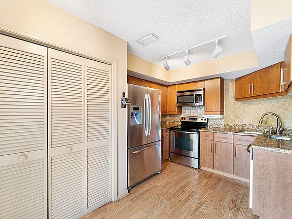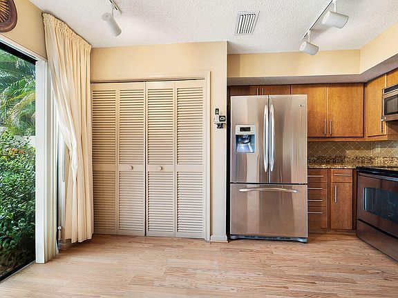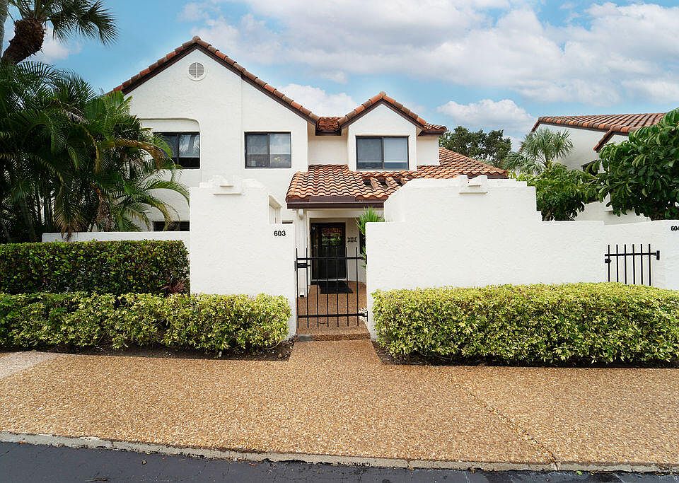 Rare Opportunity in Boca Pointe! Ground-floor 3 bed, 2 bath condo with Florida Room, Private Courtyard, and Covered Parking. Kitchen with wood cabinets, granite countertops, SS appliances, and full-size washer and dryer. Primary Bedroom with walk-in closet and en-suite bath with double sinks, separate shower and tub. Guest bedrooms split for privacy. Originally a builder's model in 1985, with intermittent updates. Boca Pointe is a Golf community with optional memberships with exclusive Owner discounts. Zoned for A-RATED schools, all ages and up to 2 pets welcome. HOA fees include basic cable, community pool, tennis, water, security, exterior repairs, and roof. Convenient to shopping, dining, highways, and beaches. 2-year rental restriction, no large trucks. Info reliable, not guaranteed.
