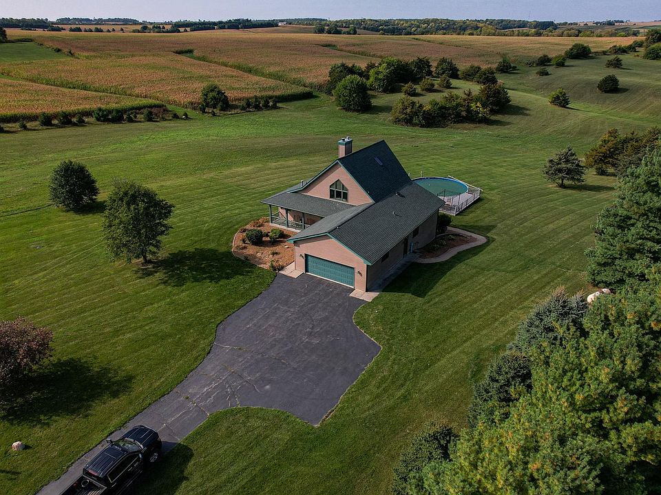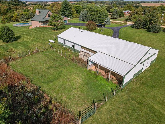 Sitting amongst the rolling hills of Ogle county this property has so much to offer. The main house has 4 bedrooms and 3 bathrooms. As you walk in the home you have a nice open flow from the kitchen into the family room with hardwood floors, a stone fireplace and beautiful windows providing tons of natural light. Two sliding doors take you out onto the deck. Off one wing of the home you have a large master bedroom, master bathroom with walk in closet. The other wing provides two good sized bedrooms, a full bathroom to share and 36" doorways. Upstairs you have an oversized loft. The lower level provides a ton of entertaining space with the fireplace, sitting area, pool table, and a large bar area with beer tapper, refrigerator and TV. Of course everything is enhanced because of the windows and walkout allowing tons of natural light! A 40x90 outbuilding provides storage for all your equipment, UTVs, tractors, etc. Within the building there is a 1 bedroom 1 bathroom studio apartment with its own family room, bathroom and laundry. From the home and the outbuilding you have beautiful views of the hills and scenery. The property transitions into early successional forest then into timber and woods. Tons of nooks and pockets that would accommodate food plots. On the west side of the property is 5.5 acres of tillable ground that can be rented out for income. Large blind is situated on the edge of the timber and tillable. On the other side is another area of timber. Additional features include an above ground pool with deck, deck off the rear of the home and patio outside the walkout lower level. Small off grid cabin in the woods. In floor heat in the basement, garage, and washing room. This property has so much potential as it would make a great hunting property, equine property or a nice getaway property.?