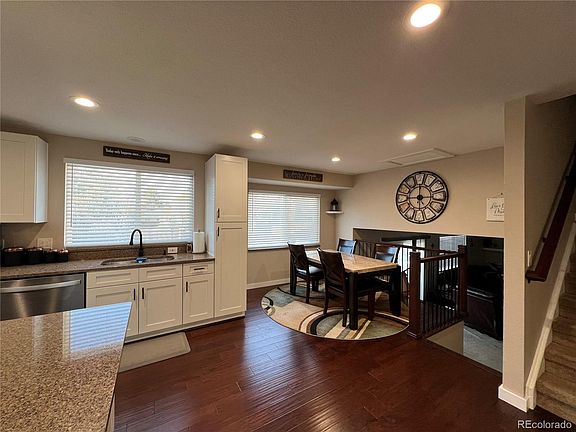 This nicely updated home sits on almost a 1/4 acre, is open, bright, and ready for family, friends or entertaining. The large kitchen boasts soft-close cabinets and drawers, an 8.5 foot island, two ovens, a beverage cooler, dining room/breakfast nook and has great views of the gorgeous backyard. From the kitchen you will see the adjacent large room currently used as a dining room. This space is so versatile and can be a place to watch sports, a formal living room or maybe a place to play pool or ping pong... The options are endless. The family room has a cozy gas fireplace, hearth, and built in counter which could be used as a bar or desk. The sliding glass door from the family room leads to the expansive and well cared for lush yard. Here we have an outdoor paradise complete with a large patio, gazebo with lights and a fan. The backyard is mostly level and perfect for so many outdoor sports, gardening, playing, entertaining, pets and the like. Going back inside and upstairs you will find four bedrooms. The master is large, has a walk-in closet, great views of the yard and mountains and has an en-suite 3/4 bath with marble counter, double sinks and LVP flooring. There are three other bedrooms and a full bath with Quartz counter, double sinks, separate shower area and LVP flooring. Finished open basement! All LED lights have five color changing options. The front yard has just been xeriscaped to save water but there's still a nice area of grass and flower beds. South-facing home means less snow shoveling! Newly painted brick and trim! Powell Middle School is at the end of the street and Puma Park is around the corner! This home has so many good things including restaurants and grocery shopping less than a mile away. The Streets of Southglenn, Main Event, AMC Theater, and more restaurants are so close. South Suburban rec centers and the Sports Complex are nearby and there's convenient access to C470.... Great home, fabulous neighborhood, ideal location! Welcome Home!