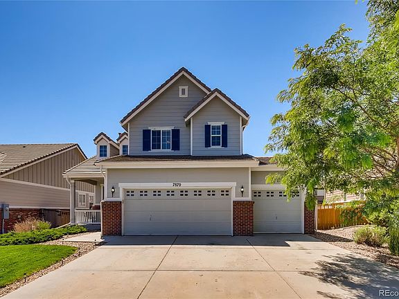 You will instantly fall in love with the beautiful brick detail, 3-car garage, concrete tile roof and covered front porch. This SIX bedroom home has room for the whole family! Upon entry you're greeted with vaulted ceilings and luxury laminate flooring throughout the main level. The main level includes one bedroom and 3/4 bath. Enjoy cooking in the light and bright kitchen with your gas cooktop and lots of countertop space. The kitchen flows into the dining room and living room. Just off the dining room there is a large stamped concrete patio for dining and outdoor entertaining! The fully fenced backyard is well maintained with landscaping and sprinkler system. The upper level boasts a large master suite with 5-piece bath (includes a separate water closet) and walk-in closet, 3 additional bedrooms, a full bathroom and laundry room. Downstairs you'll find a finished basement with bedroom and recreation room. This home is walking distance to the neighborhood pool, tennis courts and both parks! For the outdoor enthusiast you can enjoy the Hidden Mesa open space with trails and mountain biking paths, and it also connects to the Cherry Creek Trail. There is also a 190-acre park in the planning and development phases with the Town of Castle Rock coming soon to Cobblestone Ranch! Don't miss the 3D Matterport Tour to virtually walk the home!